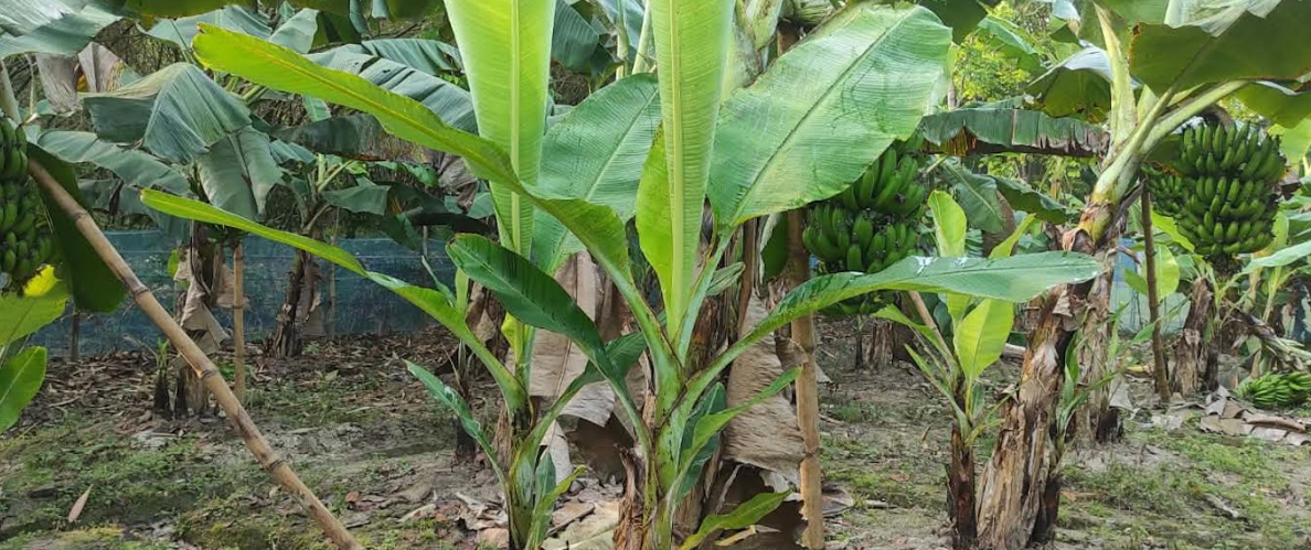 কৃষক খায়রুল আলম জানান, তিনি এমএ পাশ করে বাসায় বেকার বসেছিলেন| হঠাৎ তার মাথায় আসে কলা চাষের কথা| প্রায় এক বিঘা তিনি উচ্চ ফলনশীল জি-৯ (এ-৯) বা গ্র্যান্ড নাইন জাতের টিস্যু কালচার কলা চাষ করেন| কলা রোপণের মাত্র ৯-১০ মাসের মধ্যে কলার কাঁদি কাটা যায়| সব গাছ সমান উচ্চতার হয়, যা বাগানের পরিচর্যা সহজ করে| প্রতিটি কাঁদিতে গড়ে ২৫০ থেকে ৩০০টি পর্যন্ত কলা থাকে| কলাচাষে তার মোট ব্যয় হয়েছে ৮০ হাজার টাকা| ইতিমধ্যে লক্ষাধিক টাকার কলা বিক্রি করেছেন তিনি| বর্তমানে জমিতে পর্যাপ্ত কলার খাদি রয়েছে, যা খনেক টাকায় বিক্রি হবে| এছাড়া কলার চারাও বেশ দামে বিক্রি বলে জানান তিনি|