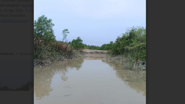 দশমিনা(পটুয়াখালী)প্রতিনিধি : পটুয়াখালীর দশমিনা উপজেলায় সামাজিক বনাঞ্চলের মধ্যে দিয়ে প্রবাহমান খালগুলোতে অবৈধভাবে বাঁধ নির্মান করার অভিযোগ উঠেছে| উপজেলার চরাঞ্চলে বন বিভাগের উদ্যোগে এই সামাজিক বনাঞ্চল গড়ে তোলা হয়| অভিযোগ উঠেছে বন বিভাগের কিছু অসাধু কর্মচারী ও চরের স্থানীয় প্রভাবশালী ব্যক্তির যোগসাজশে খালের মধ্যে বাঁধ দেয়া হয়| খালে বাঁধ দিয়ে অবাধে মৎস্য নিধন,পানি প্রবাহ বন্ধ হওয়ায় সেচ কাজ ব্যাহত হওয়ায় ফসল উৎপাদন কমে যাওয়াসহ সামাজিক বনাঞ্চল হুমকির মুখে পড়ে গেছে| ফলে পরিবেশ বিপর্যয়ের আশংকা দেখা দিয়েছে| খালের মধ্যের এই বাঁধ কাটার উদ্যোগ কেউ নিচ্ছে না| চরাঞ্চলের সামাজিক বনাঞ্চলের মধ্যে প্রবাহমান খালগুলোতে অস্থায়ী বাঁধ নির্মান করায় পানি প্রবাহ বন্ধ হয়ে গেছে| খালের ভিতরে আটকে পড়া মাছ নির্বিচারে শিকার করায় মাছের উৎপাদন বন্ধ হয়ে যাচ্ছে| খালগুলোতে প্রাকৃতিকভাবে মাছের প্রজনন হতো যা এখন আর হচ্ছে না| এছাড়া চরের সামাজিক বনাঞ্চলের জীববৈচিত্র এখন হুমকির মুখে পড়েছে| উপজেলার আলীপুরা ইউনিয়নের পূর্ব আলীপুর গ্রামে সরকারি একটি খালের জমি বন্দোবস্ত নিয়ে বাঁধ দেয়ায় প্রায় ১০ হাজার একর আবাদি কৃষি জমির উৎপাদন হুমকির মুখে পড়েছে| প্রায় ২০ বছর যাবত এলাকার প্রান্তিক কৃষকরা লক্ষ্যমাত্রা অনুযায়ী ফসল উৎপাদন করতে পারছে না|