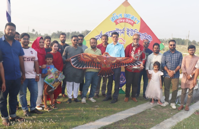 খুলনা : নর্থ ওয়েস্টার্ন ইউনিভার্সিটিতে বাংলা শুভ নববর্ষ-১৪৩৩ (পহেলা বৈশাখ) উদযাপন উপলক্ষে অনুষ্ঠিত হলো ঘুড়ি উৎসব প্রতিযোগিতা। সোমবার (১৩ এপ্রিল) বিকালে সোনাডাঙ্গা বাইপাস রোডস্থ ময়ূরী আবাসিক পার্ক প্রাঙ্গণে নর্থ ওয়েস্টার্ন ইউনিভার্সিটির ভারপ্রাপ্ত ভাইস-চ্যান্সেলর প্রফেসর কানাই লাল সরকার এ ঘুড়ি উৎসবের শুভ উদ্বোধন করেন। এ সময় তাঁর সাথে উপস্থিত ছিলেন, নর্থ ওয়েস্টার্ন ইউনিভার্সিটির বিজ্ঞান ও প্রযুক্তি অনুষদের ডীন ড. মো: ইমজামাম-উল-হোসেন, ব্যবসায় প্রশাসন বিভাগের অধ্যাপক ও পহেলা বৈশাখ-১৪৩৩ উদযাপন কমিটির আহ্বায়ক ড. মো: রউফ বিশ্বাস, সিএসই বিভাগের সহযোগী অধ্যাপক ও পহেলা বৈশাখ-১৪৩৩ উদযাপন কমিটির সদস্য সচিব মো: আসাদুজ্জামান, রেজিস্ট্রার ড. শেখ শফিকুর রহমান, প্রক্টর শকীল আহমদ, বিভাগীয় প্রধানগণ, সহকারী প্রক্টরবৃন্দ, দপ্তর প্রধানগণ, শিক্ষক, শিক্ষার্থী, কর্মকর্তা ও কর্মচারীবৃন্দ। নর্থ ওয়েস্টার্ন ইউনিভার্সিটির আয়োজনে এ ঘুড়ি উৎসব প্রতিযোগিতা ৪ পর্বে অনুষ্ঠিত হয়। যার মধ্যে রয়েছে, সুন্দর ঘুড়ি প্রদর্শনী, সর্বোচ্চ উচ্চতায় ঘুড়ি উঠানো, ঘুড়ি কাটাকাটি ও ঘুড়ি দৌড়। এদিকে সুন্দর ঘুড়ি প্রদর্শনীতে অংশ নিয়ে বিজয়ী হয়েছে ইউনিভার্সিটির ইইই বিভাগের আবু উবাইদা সায়মন, সর্বোচ্চ উচ্চতায় ঘুড়ি উঠানোতে চ্যাম্পিয়ন হয়েছে সিএসই বিভাগের সাইফ ও রানার্স আপ হয়েছে সিএসই বিভাগের শুভ্র দুবে, ঘুড়ি কাটাকাটিতে বিজয়ী হয়েছে সিএসই বিভাগের ক্যালভিন অয়ন, ঘুড়ি দৌড় প্রতিযোগিতায় চ্যাম্পিয়ন হয়েছে আইন বিভাগের নাইমুর ও রানার্স আপ হয়েছে ইংরেজি ভাষা ও সাহিত্য বিভাগের নাইফুল। পরে ঘুড়ি উৎসব প্রতিযোগিতায় অংশগ্রহণকারী ইউনিভার্সিটির শিক্ষার্থীদের মধ্যে পুরস্কার বিতরণ অনুষ্ঠিত হয়।