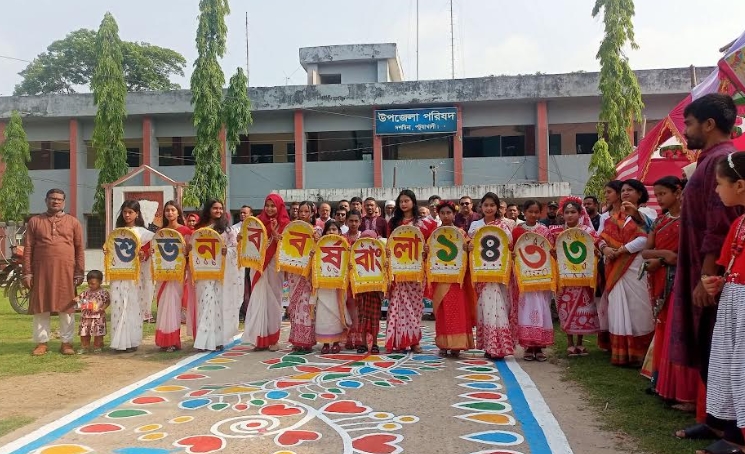 দশমিনা(পটুয়াখালী) প্রতিনিধি : পটুয়াখালীর দশমিনা উপজেলায় বাংলা নববর্ষকে বরন করে নিতে গত মঙ্গলবার সকাল থেকেই উপজেলা পরিষদের চত্বরে এলাকাবাসী এসে জমায়েত হয়| নববর্ষ উদযাপন উপলক্ষ্যে উপজেলা প্রশাসনসহ বিভিন্ন সামাজিক, সাংস্কৃতিক ও রাজনৈতিক দল নানা কর্মসূচী পালন করেছে| কর্মসূচীর মধ্যে ছিল বর্নাঢ্য র্যালি,লোকজ উৎসব, বৈশাখী মেলা,আলোচনা সভা ও সাংস্কৃতিক অনুষ্ঠান| সকাল ৯ টায় উপজেলা প্রশাসনের উদ্যোগে পরিষদের চত্বর থেকে উপজেলা নির্বাহী কর্মকর্তা মো. সাইফুল ইসলামের নেতৃত্বে একটি র্যালি বের হয়ে শহরের বিভিন্ন এলাকা প্রদক্ষিন শেষে একই স্থানে গিয়ে শেষ হয়| বাংলা নববর্ষ বরন উপলক্ষ্যে উপজেলা পরিষদ চত্বর ও বিনোদন স্পটগুলোতে নারী-পুরুষ এবং তরুন-তরুনীদের মিলন মেলা ছিল| অনুষ্ঠানের বিশেষ আকর্ষন হিসাবে বিকালে স্থানীয় মাধ্যমিক বিদ্যালয়ের মাঠে গ্রাম বাংলার ঐতিহ্যবাহী লাঠি খেলা অনুষ্ঠিত হয়| এছাড়া উপজেলার রনগোপালদী ইউনিয়নের যৌতা গ্রামে দিনব্যাপি ˆবশাখী মেলায় শত শত দর্শনার্থীদের পদচারনায় মুখরিত ছিল|