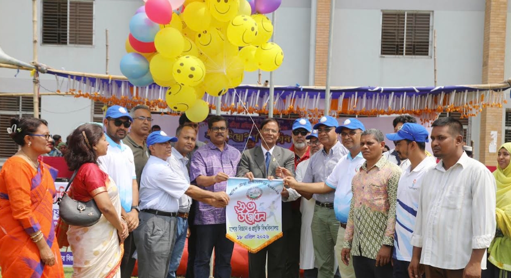 যশোর প্রতিনিধি : যশোর বিজ্ঞান ও প্রযুক্তি বিশ্ববিদ্যালয়ে (যবিপ্রবি) বর্ণাঢ্য আয়োজনের মধ্য দিয়ে শুরু হয়েছে বার্ষিক ক্রীড়া প্রতিযোগিতা-২০২৬। জাতীয় সংগীত পরিবেশন, জাতীয় পতাকা,বিশ্ববিদ্যালয় ও অলিম্পিকের পতাকা উত্তোলন, বেলুন-ফেস্টুন উড়ানো এবং শপথ গ্রহণসহ নানা আয়োজনের মধ্য দিয়ে শনিবার (১৮ এপ্রিল) সকাল ১০টায় বিশ্ববিদ্যালয়ের কেন্দ্রীয় খেলার মাঠে এ প্রতিযোগিতার উদ্বোধন করা হয়।
