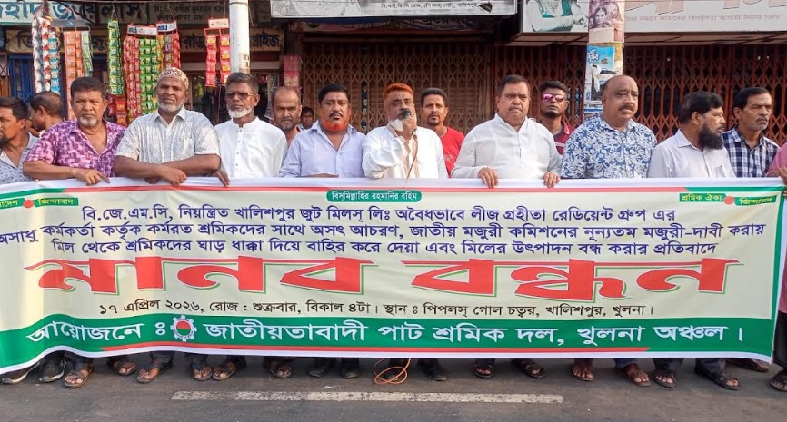 শুক্রবার বিকাল ৫ টায় বিআইডিসি সড়কের পিপলস গোলচত্বরে জাতীয়তাবাদী পাট শ্রমিকদল খুলনা অঞ্চলের উদ্যোগে এ প্রতিবাদ সমাবেশের আয়োজন করা হয়।