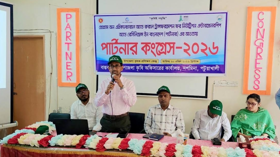 দশমিনা(পটুয়াখালী)প্রতিনিধি : পটুয়াখালীর দশমিনা উপজেলায় কৃষি সম্প্রসারন অধিদপ্তরের উদ্যোগে ২০২৫-২৬ অর্থ বছরে কৃষকদেরকে নিয়ে ফিল্ড স্কুল কংগ্রেস-২০২৬ অনুষ্ঠিত হয়| কৃষি বিভাগের প্রোগ্রাম অন এগ্রিকালচারাল এ্যান্ড রুরাল ট্রান্সফরমেশন ফর নিউট্রিশন,এন্টারপ্রেনরশিপ অ্যান্ড রেসিলিয়েন্স ইন বাংলাদেশ(পার্টনার) প্রকল্পের আওতায় এই স্কুল কংগ্রেস অনুষ্ঠিত হয়| উপজেলা কৃষি বিভাগের আয়োজনে বিশ্ব ব্যাংক এবং আইএফএডি’র সহযোগিতায় কৃষক প্রশিক্ষন কেন্দ্রে এই ফিল্ড কংগ্রেস আয়োজন করা হয়| উপজেলা কৃষি কর্মকর্তা কৃষিবিদ মো. জাফর আহমেদ’র সভাপতিত্বে অনুষ্ঠিত কংগ্রেস সভায় প্রধান অতিথি ছিলেন পটুয়াখালী জেলা কৃষি সম্প্রসারন অধিদপ্তরের উপ-পরিচালক ড.মো. আমানুল ইসলাম| সভায় উপস্থিত ছিলেন জেলা কৃষি সম্প্রসারন অধিদপ্তরের উপ-পরিচালক(শস্য) মো.শাহাদাত হোসেন,কৃষি সম্প্রসারন অফিসার মো. হাসিন রাইয়ান,উপজেলা পরিবার পরিকল্পনা কর্মকর্তা ফারজানা লিসা,উপজেলা জন¯^াস্থ্য সহকারী প্রকৌশলী সাইফুর রহমান শাহিন প্রমুখ| দিনব্যাপী কংগ্রেস অনুষ্ঠানে ফসল উৎপাদন ব্যবস্থা,উত্তম কৃষি চর্চা,আধুনিক চাষাবাদ,পুষ্টিকর ফসল উৎপাদন,বালাই ব্যবস্থাপনা ও ফসলের বাজারজাতকরনের উপর ক্ষুদ্র ও প্রান্তিক কৃষকদেরকে প্রশিক্ষন দেয়া হয়| উপজেলার ৭টি ইউনিয়নের শতাধিক কৃষক ও কিষানী অংশ নেয়| জলবায়ু পরিবর্তনের কারনে টেকসই ফসল উৎপাদন আধুনিক ও সহনশীল কৃষি প্রযুক্তির উপর গুরুত্ব দেয়া হয়|