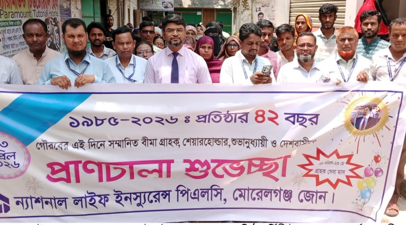মোরেলগঞ্জে ন্যাশনাল লাইফ ইন্সুরেন্সের প্রতিষ্ঠা বার্ষিকীতে বর্নাঢ্য শোভাযাত্রা