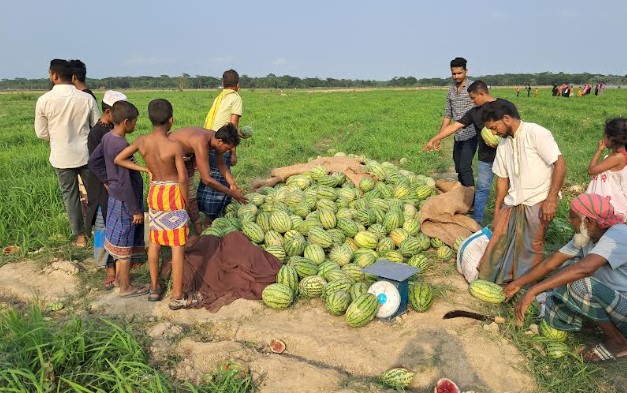 শরণখোলা প্রতিনিধি : শরণখোলায় কৃষিতে নতুন সম্ভাবনা সৃষ্টি করেছে তরমুজ| এ বছর তরমুজের বাম্পার ফলন হয়েছে| ভরাট হওয়া খাল পুনঃ খনন করে পানি সংকট দুর করা গেলে তরমুজসহ কৃষি ফসল উৎপাদনে উপজেলায় বৈপ্লবিক পরিবর্তন ঘটবে বলে কৃষকরা জানালেন|
