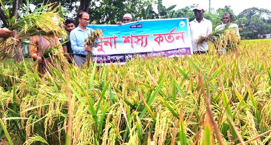 ফকিরহাট প্রতিনিধি : বাগেরহাটের ফকিরহাটে কৃষকের ঘরে উঠছে শুরু করেছে বোরো ধান| উপজেলায় চলতি বছর বোরো ধানের বাম্পার ফলন হয়েছে| ইতোমধ্যে উপজেলার বিভিন্ন মাঠে ধান কাটা ও মাড়াই শুরু হয়েছে| ফলে ব্যস্ত সময় পার করছে কৃষক| চলতি বোরো মৌসুমে অধিক ধান ফলন হতে যাচ্ছে বলে আশা করছে কৃষি বিভাগ| উপজেলা কৃষি অফিস সূত্রে জানা যায়, ফকিরহাটে চলতি বোরো মৌসূমে ৮ হাজার ৫৩০ হেক্টর জমি বোরো চাষের লক্ষ্যমাত্রা নির্ধারণ করা হয়েছিল| তবে লক্ষ্যমাত্রার চেয়ে আরো বেশি বোরোর আবাদ হয়েছে| ২১ হাজার কৃষক এবার বোরো ধানের চাষ করেছেন| এরমধ্যে ৩৫ শতাংশ জমির ধান কর্তন করা হয়ে গেছে| উপজেলা বিভিন্ন এলাকা ঘুরে দেখা গেছে, জমির ধানের গোছায় হৃষ্টপুষ্ট শিষ এসেছে| বেশিরভাগ শিষের ধান পাকার অপেক্ষায়| অনেক শিষের ধান পেকে গেছে| অপকারী পোকা বা বালাইয়ের তেমন আক্রমণ না হওয়ায় ধান খেতে দিগন্ত জোড়া সবুজের সমাহার| কৃষি বিভাগ থেকে চাষিদের দ্রুত ধান কর্তনের পরামর্শ দিচ্ছেন| কারন বৃষ্টি হলে ধানের ক্ষতির আশংকা রয়েছে| ফকিরহাট ইউনিয়নের কাঠালতলা ব্লকের কৃষক তোহিদ শেখ, নাজমুল শেখ অহিদ শেখসহ অনেক কৃষক জানান, এবার ধানের ফলন খুব ভাল হয়েছে| আবহাওয়া অনুকুলে থাকলে অনেক লাভবান হবেন| তবে শ্রমিকের মুজুরি নিয়ে তারা সন্তুস্ত নন| দিন প্রতি একজন শ্রমিক ৮০০ টাকা থেকে ১৪০০ টাকা পর্যন্ত মুজুরি নিচ্ছেন| সে তুলনায় ধানের দাম নিয়েও ভাবছেন কৃষকরা| বিভিন্ন বএলাকার উপ-সহকারী কৃষি কর্মকর্তারা বলেন, নবসময় ধান ক্ষেতের ও কৃষকের খোজ-খবর নেয়া হচ্ছে| ধান ক্ষেতগুরো সরেজমিন পরিদর্শন করছেন কর্মকর্তারা| কৃষকদের নানা ধরনের পরামর্শ ও সহযোগিতা করা হয়েছে| ফকিরহাট উপজেলা কৃষি কর্মকর্তা কৃষিবিদ শেখ শাখওয়াত হোসেন বলেন, ধান উৎপাদনে সর্বাধিক উৎপাদনশীল মৌসুম বোরো| বোরোর ওপর ভিত্তি করেই দেশের খাদ্য নিরাপত্তার ভিত্তি রচিত হয়| এবার বোরোর ফলন খুব ভালো হয়েছে| ধান উৎপাদনের লক্ষ্যমাত্রা ধরা হয়েছে ৯.১৫ টন| ইতিমধ্যে প্রায় ৩৫ শতাংশ ধান কাটা হয়েছে| ৮০ শতাংশ ধান পাকলে কেটে ফেলার পরামর্শ দেন এ কর্মকর্তা|