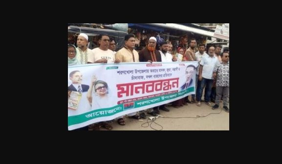 শরণখোলা অফিস : শরণখোলা উপজেলা বিএনপি মাদক ও চাঁদাবাজের বিরুদ্ধে মানববন্ধন করেছে। ৬ অক্টোবর (সোমবার) বিকেলে উপজেলার পাঁচ রাস্তার মোড়ে এ মানববন্ধন অনুষ্ঠিত হয়। বিএনপি নেতা তালুকদার মোঃ মধুর সঞ্চালনায়