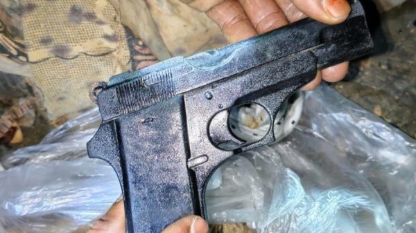 যশোর প্রতিনিধি : যশোরে গোপন সংবাদের ভিত্তিতে কোতোয়ালি থানার পুলিশ সদস্যরা অভিযানে রান্নাঘরের মেঝে খুঁড়ে পুঁতে রাখা একটি বিদেশি পিস্তল উদ্ধার করা হয়েছে। শনিবার (২৫ অক্টোবর) রাত ৮টার দিকে সদরের