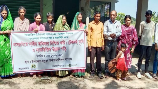 তালা প্রতিনিধি : বেসরকারি সংস্থা-উদ্দীপ্ত মহিলা উন্নয়ন সংস্থা’র উদ্যোগে তালায় আন্তর্জাতিক গ্রামীণ নারী দিবস পালিত হয়েছে। দিবসটি উপলক্ষে গ্রামীণ নারীদের ভূমি অধিকার, কৃষিতে অংশগ্রহণ ও জলবায়ু সহনশীলতা নিশ্চিতকরণের দাবিতে মানববন্ধন,