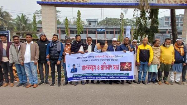 দশমিনা(পটুয়াখালী) প্রতিনিধি : পটুয়াখালীর দশমিনা উপজেলায় দীপু দাস হত্যার ঘটনায় মানববন্ধন ও প্রতিবাদ সভা অনুষ্ঠিত হয়। গতকাল শনিবার সকাল ১০টায় উপজেলা পরিষদের প্রধান সড়কে সর্বস্তরের জনগনের ব্যানারে এই কর্মসূচী পালন