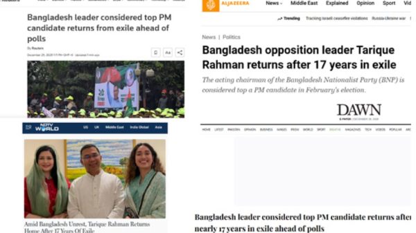ডেস্ক রিপোর্ট : দীর্ঘ প্রায় দেড় যুগ পর দেশে ফিরেছেন বিএনপির ভারপ্রাপ্ত চেয়ারম্যান তারেক রহমান। বৃহস্পতিবার (২৫ ডিসেম্বর) বেলা ১১টা ৪০ মিনিটের দিকে তারেক রহমানকে বহনকারী বাংলাদেশ বিমানের ফ্লাইটটি হজরত