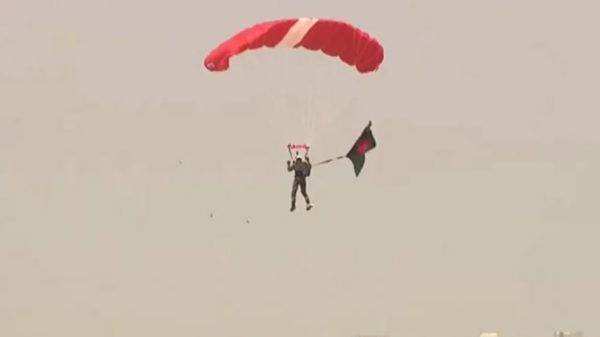 ডেস্ক রিপোর্ট : মহান বিজয় দিবসের ৫৪তম বার্ষিকী উপলক্ষে ‘টিম বাংলাদেশের’ ৫৪ জন প্যারাট্রুপার এক সাথে জাতীয় পতাকা হাতে প্যারাস্যুটিং করে বিশ্ব রেকর্ড গড়েছেন। এটি বিশ্বের বুকে সর্বাধিক পতাকা হাতে